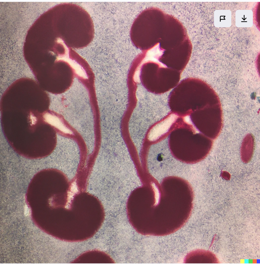 The article triggered the thought for me along the lines “I wonder if Organoids are being used in kidney research, and if so, where does the research stand? A new source of kidneys and/or kidney replacement obviously could obviate the need for dialysis in the future. So this topic is of interest to those on dialysis, especially those who are much younger than I am. As I have been trained to do so in such instances, I turned to my research assistant ChatGPT for input which is included below with modest editing by Grammarly and yours truly. The first paragraph below is the Prompt I generated to quiz ChatGBP Pro, followed by the edited response. The lead picture was generated in Dalle Ai with the Prompt “provide a picture of a potential organoid used for kidney research.”