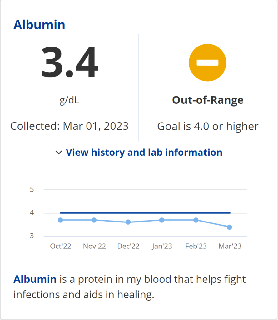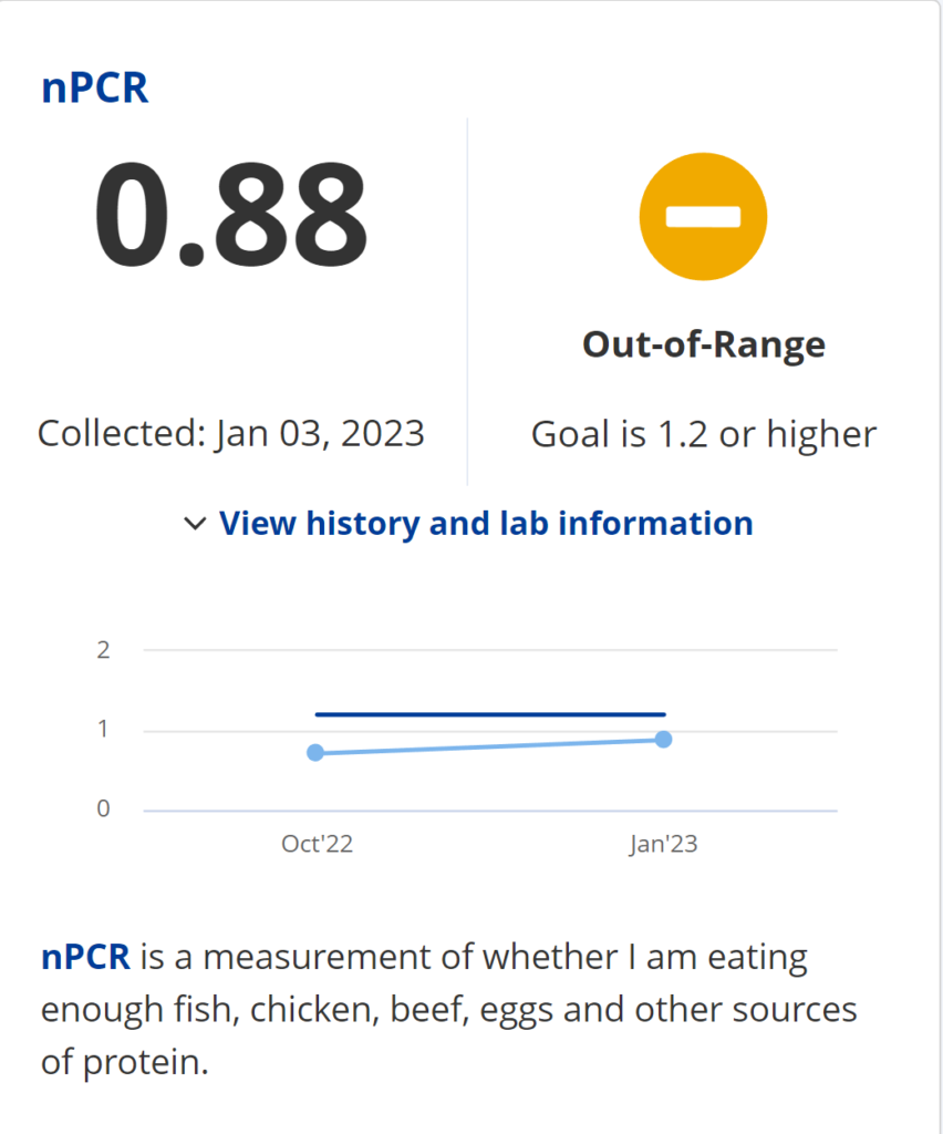 As previously mentioned, on March 1 2023 I visited Fresenius Granbury, TX for my monthly visit with my Team Nurse Cindy and labs. The results were indeed available the next day. Herein I present the results limited to those not meeting the established parameters. There are five in total given below. My short comments are at lab footers.
