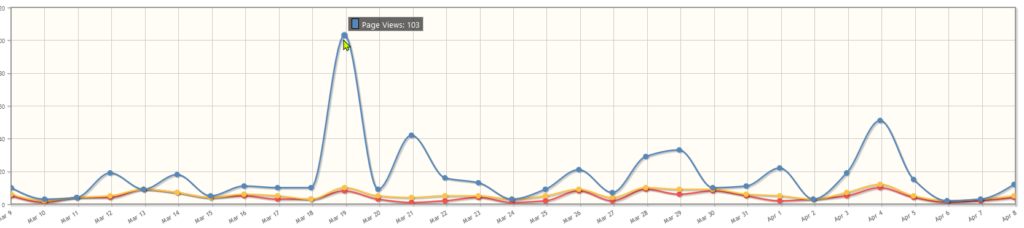 A question I quite often ask myself and others are interested in also is “How is this blog doing?” While “doing” is not well defined, today I’m going to share with readers some of the dynamic statistics I have as part of the WordPress package of Plugins. While readers never glimpse what is behind running a blog/Website such as feeser.me, lots is going on. Managing such a site is on the one hand very simple and easy, while on the other hand can be as complicated as you want to make it. If anything, I have erred on the simplistic side but there’s still lots going on. I’m going to jump in with five graphs/table grabs with dialog of what’s going on.